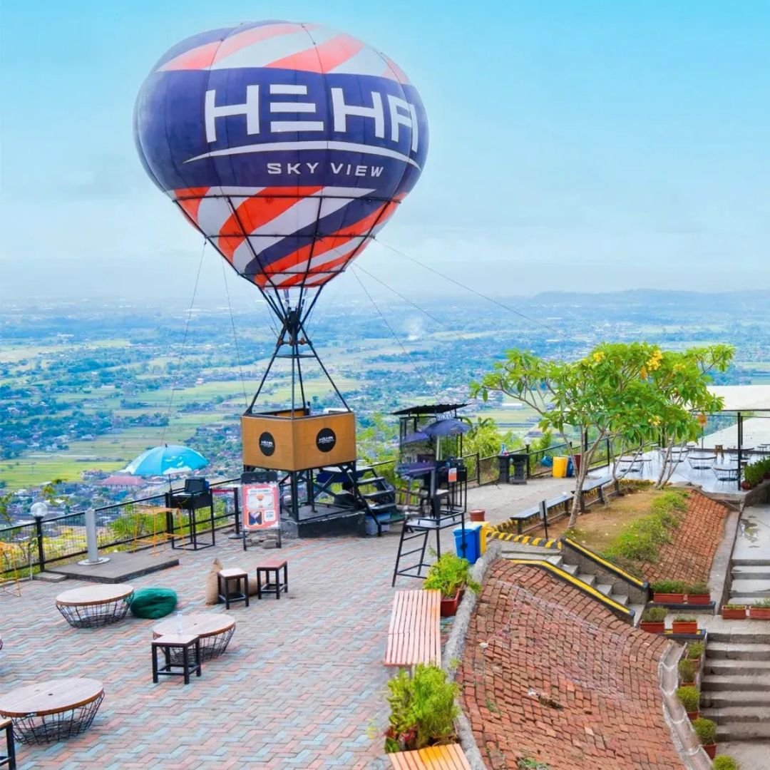 HeHa Sky View menjadi destinasi wisata kekinian yang sangat populer, terutama di kalangan wisatawan muda. Berlokasi di Patuk, Gunungkidul, tempat ini menawarkan pemandangan kota Jogja dari ketinggian. Spot foto modern, area santai, dan restoran dengan panorama malam menjadikan HeHa Sky View salah satu tujuan favorit untuk menikmati suasana senja hingga malam hari.