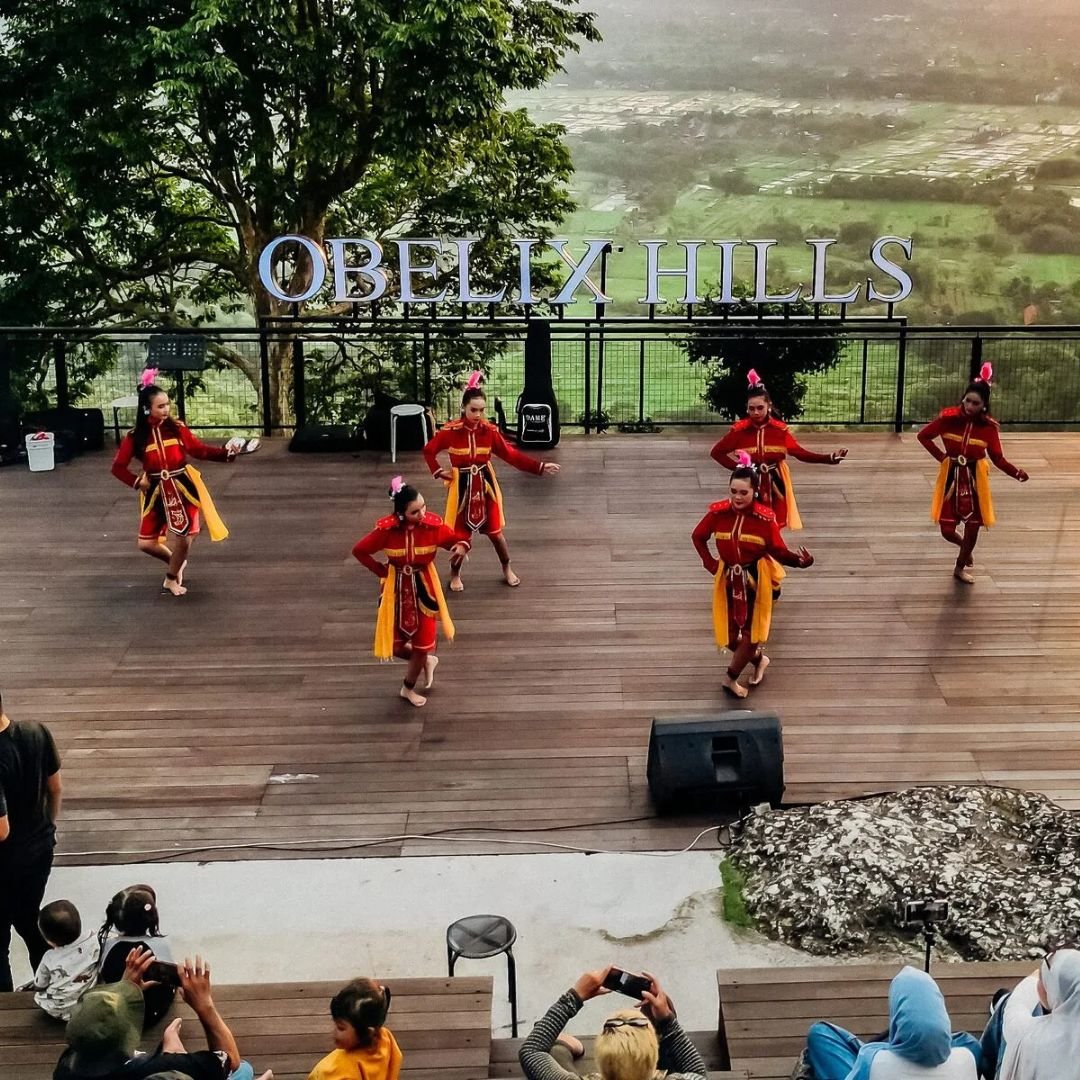 Obelix Hills menawarkan konsep wisata modern dengan pemandangan alam dari ketinggian. Destinasi ini memiliki berbagai spot foto estetik, taman tematik, dan fasilitas kuliner. Obelix Hills menjadi tempat favorit untuk menikmati matahari terbenam dengan suasana santai, terutama bagi wisatawan muda dan keluarga.