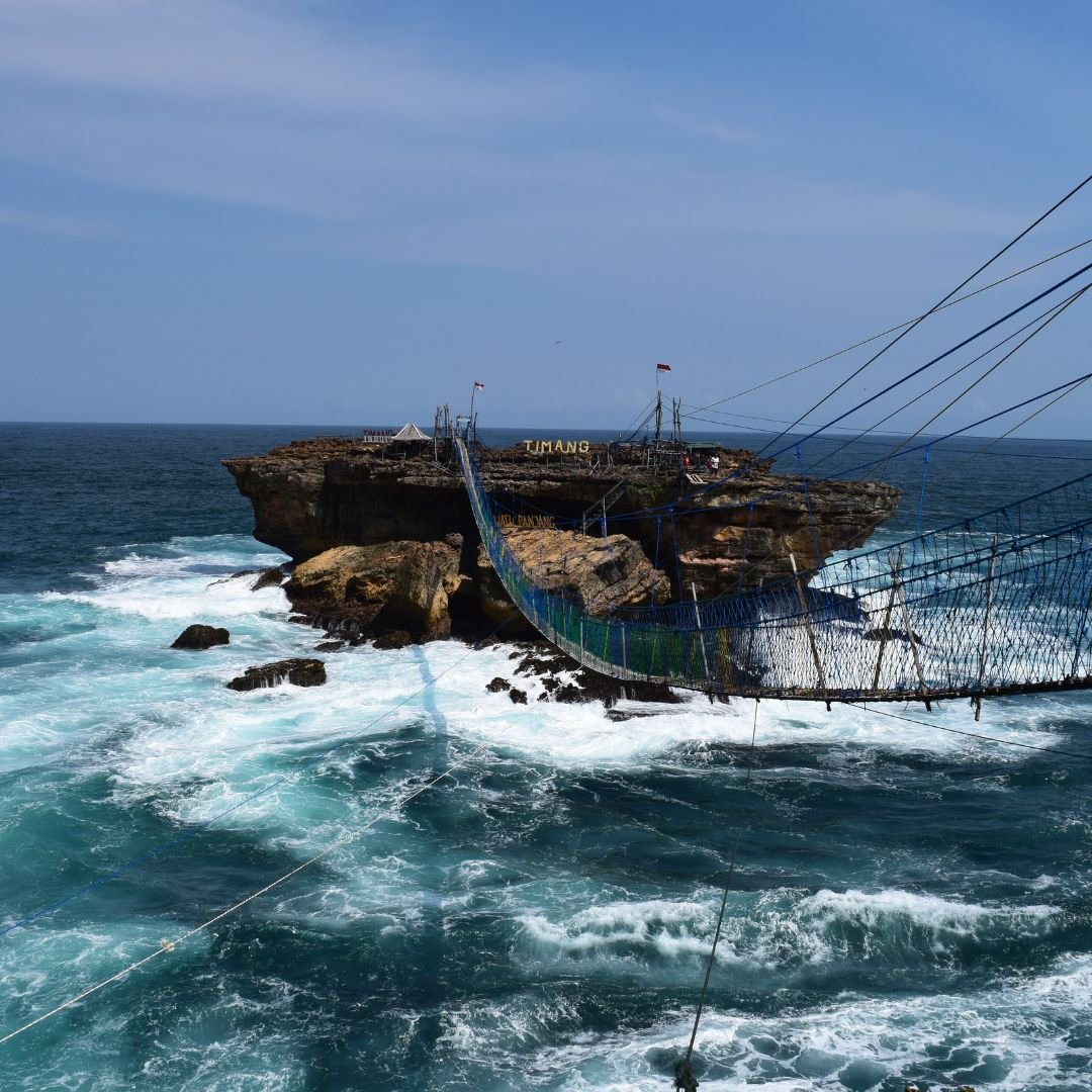 Pantai Timang terkenal dengan gondola tradisional yang menghubungkan daratan dengan pulau karang di tengah laut. Sensasi menyeberang di atas ombak laut selatan menjadi pengalaman ekstrem yang diminati wisatawan pencinta adrenalin. Selain tantangan gondola, panorama alam Pantai Timang yang masih alami membuatnya masuk dalam daftar 10 Tempat Wisata Hits di Jogja.